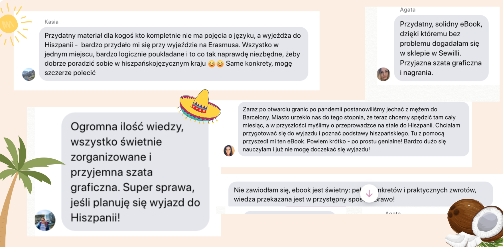 Moja gwarancja jest prosta. Po przeczytaniu ebooka nadal nie umiesz choćby zamówić kawy w Hiszpanii? Napisz do mnie, a zwrócę Ci pieniądze. Mówię poważnie.