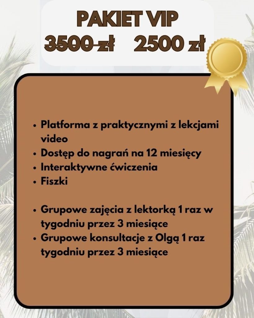 Cotygodniowe spotkania z lektorką przez 3 miesiące.
